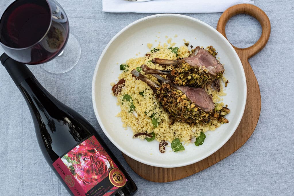 The idea for this recipe came from our Chief Winemaker, Susy Rodriguez Vasquez, who suggested pistachio-Dijon crusted lamb as the perfect dish to serve alongside our elegant, aromatic, delightfully complex 2021 Pinot Noir.
